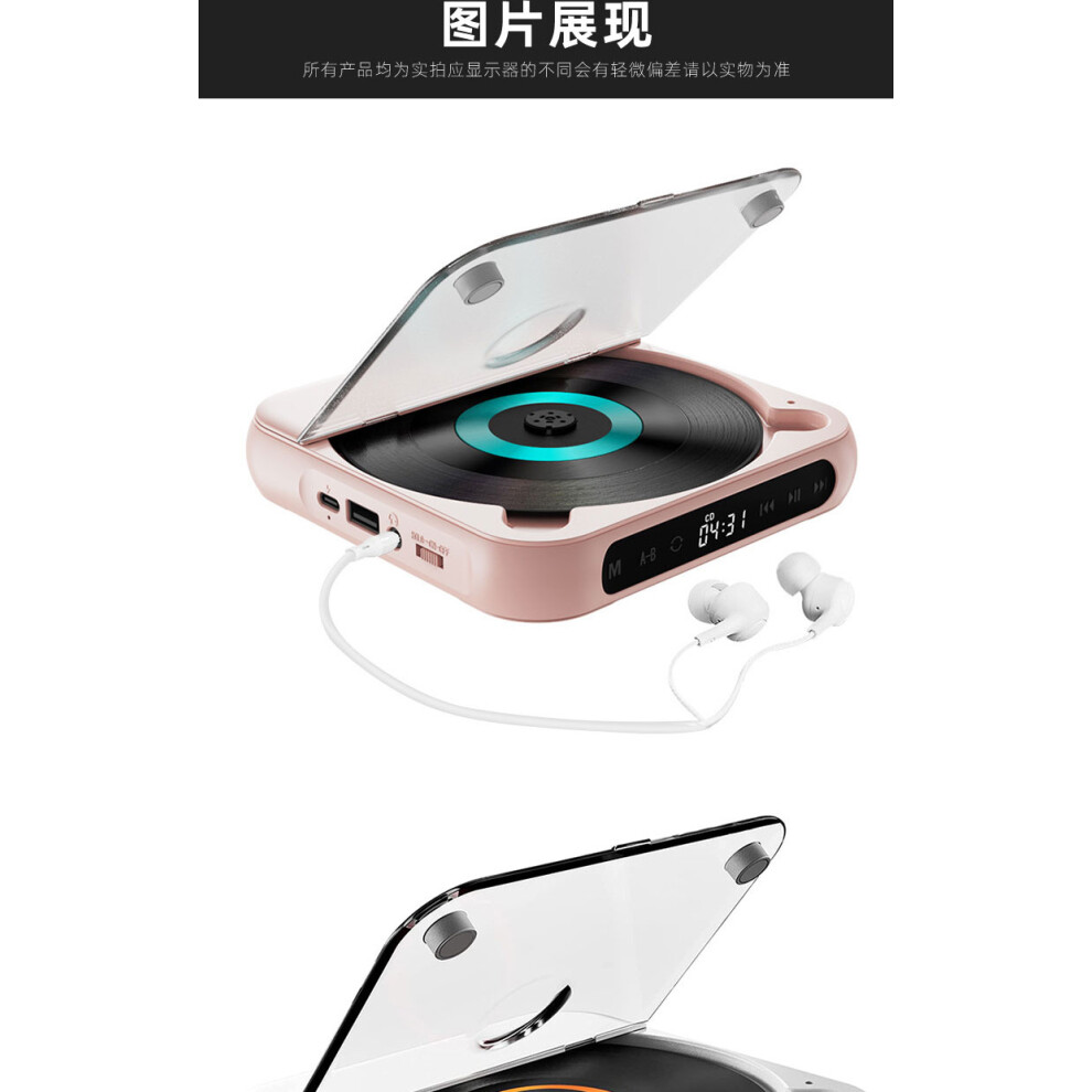 (pink) CD Player, Bluetooth Small Speaker CD Repeater, Portable Wall Mounted CD Player, Support Earphone - with Display Screen, Remote Control