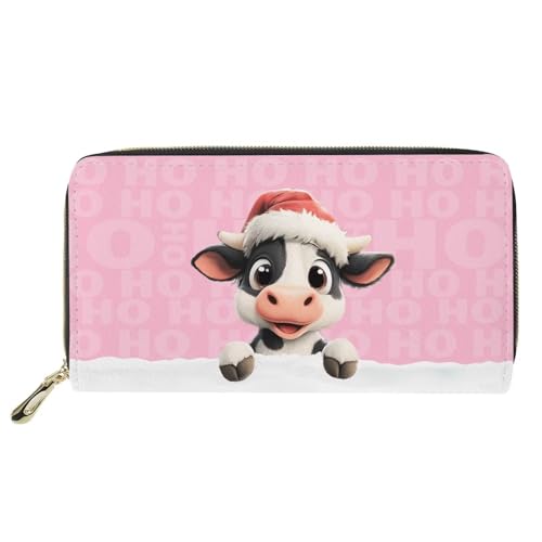 Wanyint Christmas Cow Pink Long Clutch Wallet PU Leather Christmas Coin Pouch Cell Phone Holder for Travel RFID Blocking Zipper Purse Card Case Waterproof Handbag