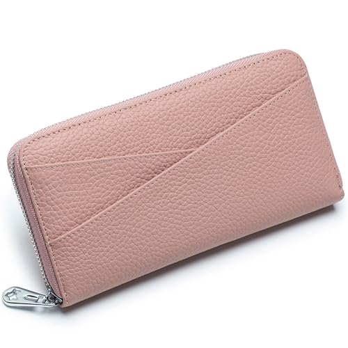 EGLOW Womens Genuine Leather Wallet RFID Blocking Leather Zip Around Wallet Travel Long Purse Zip Around Credit Card Holder Phone Wristlet Clutch, Pink, One Size
