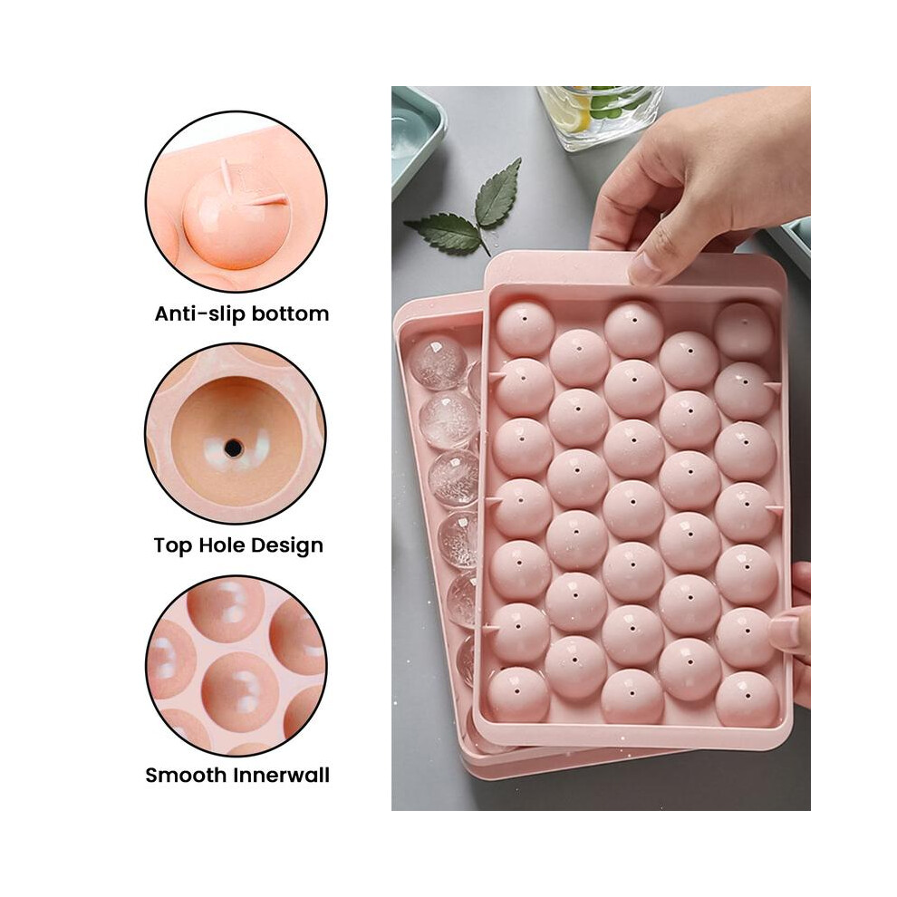 Round Ice Cube Tray 37 Grids Versatile Space Saving Small Ice Ball Maker Mold with Lid for Drink Coffee Cocktail Pink