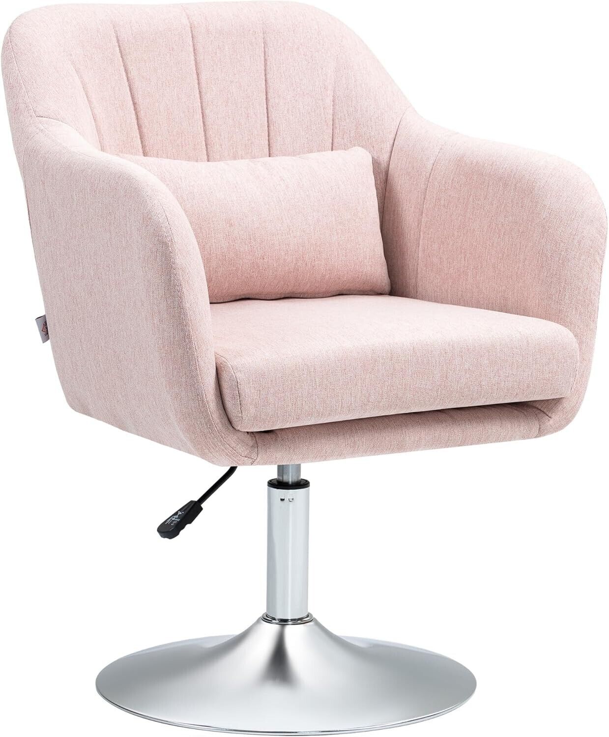 Pink Linen Desk Vanity Chair Swivel Accent Armchair Lumbar Cushion Padded Seat