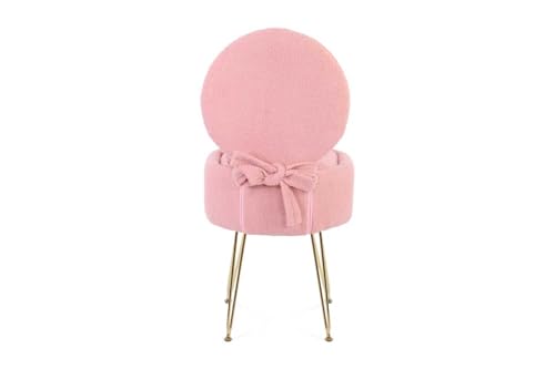 Smbcgdm Dressing Table Chair Vanity Chair, Vanity Stool with Bowknot Backrest, Living Room Women Girls Bedroom Makeup Chairs with Adjustable Foot Pads, Side Table Seat Pink