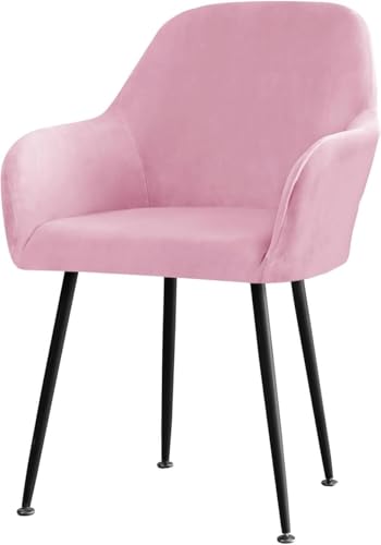 Modern Velvet Vanity Chair for Bedroom & DiningSoft Padded Seat with Metal Legs & NonSlip Pads Elegant Dressing Table Chair (Color: White Size: Gold Legs) (Pink Black legs)