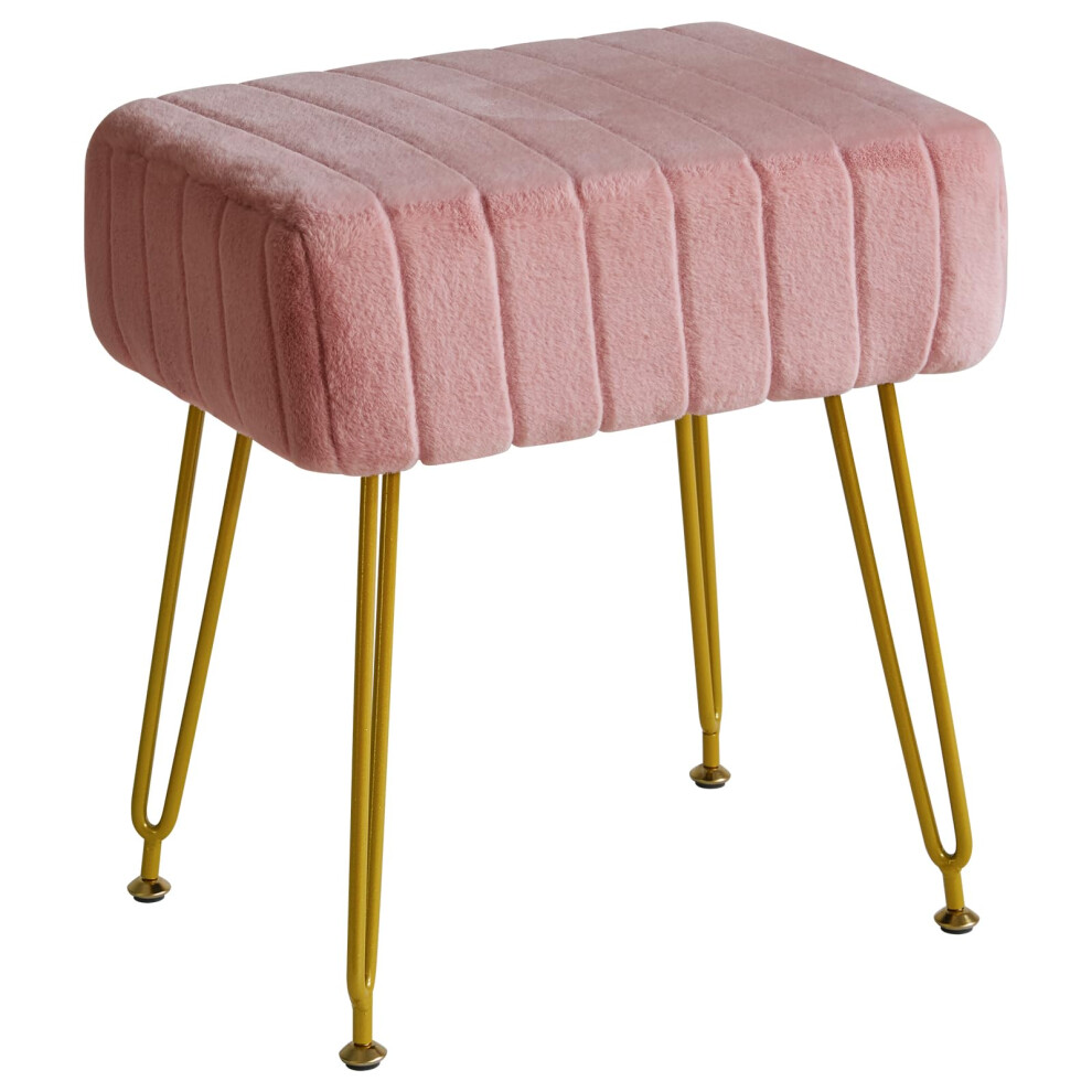 CLIPOP Teddy Fleece Dressing Table Stool Upholstered, Ottoman Foot Stool for Living Room Bedroom Comfy Makeup Vanity Seat, Hallway Shoe Bench, 150kg Weight Capacity (Pink)