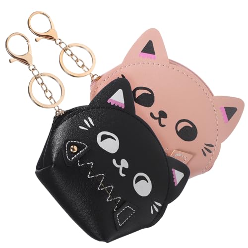 FOMIYES 2pcs Cute Cat Coin Purse and Keychain Wallet Set, Small Cartoon Pouch in Black and Pink, Portable Earbuds Case and Travel Organizer for Women and Girls