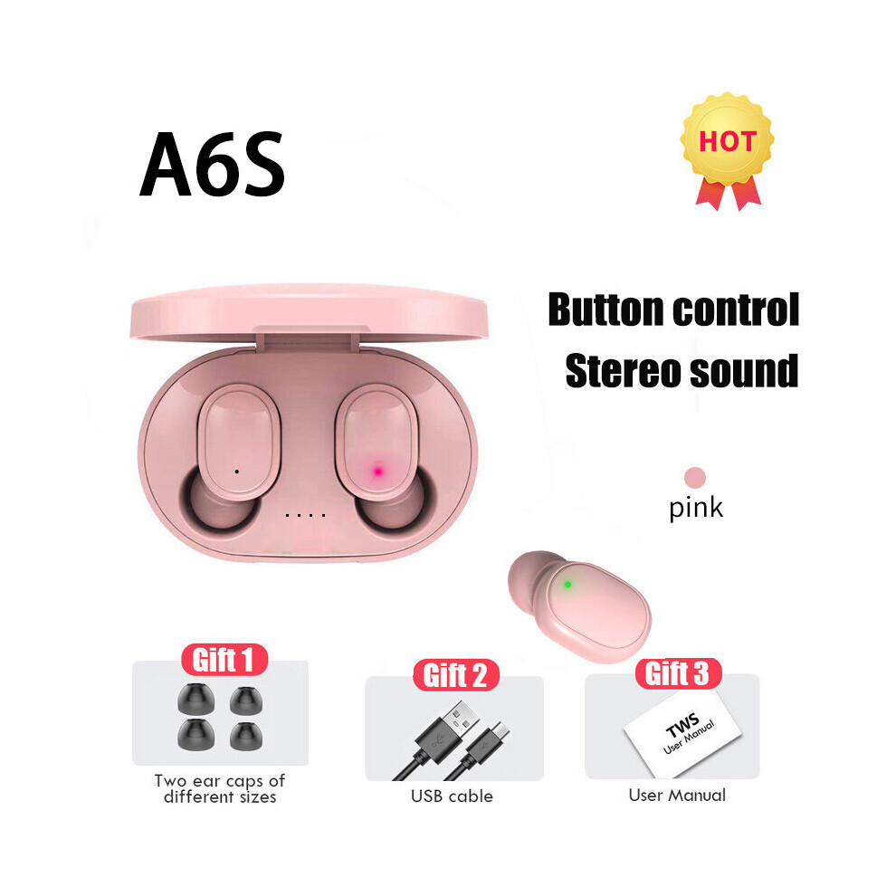 (a-Pink Earbuds) Original A6S TWS Wireless Bluetooth Headset with Mic Air Pro Earbuds for Xiaomi Noice Cancelling Earphone Bluetooth Headphones
