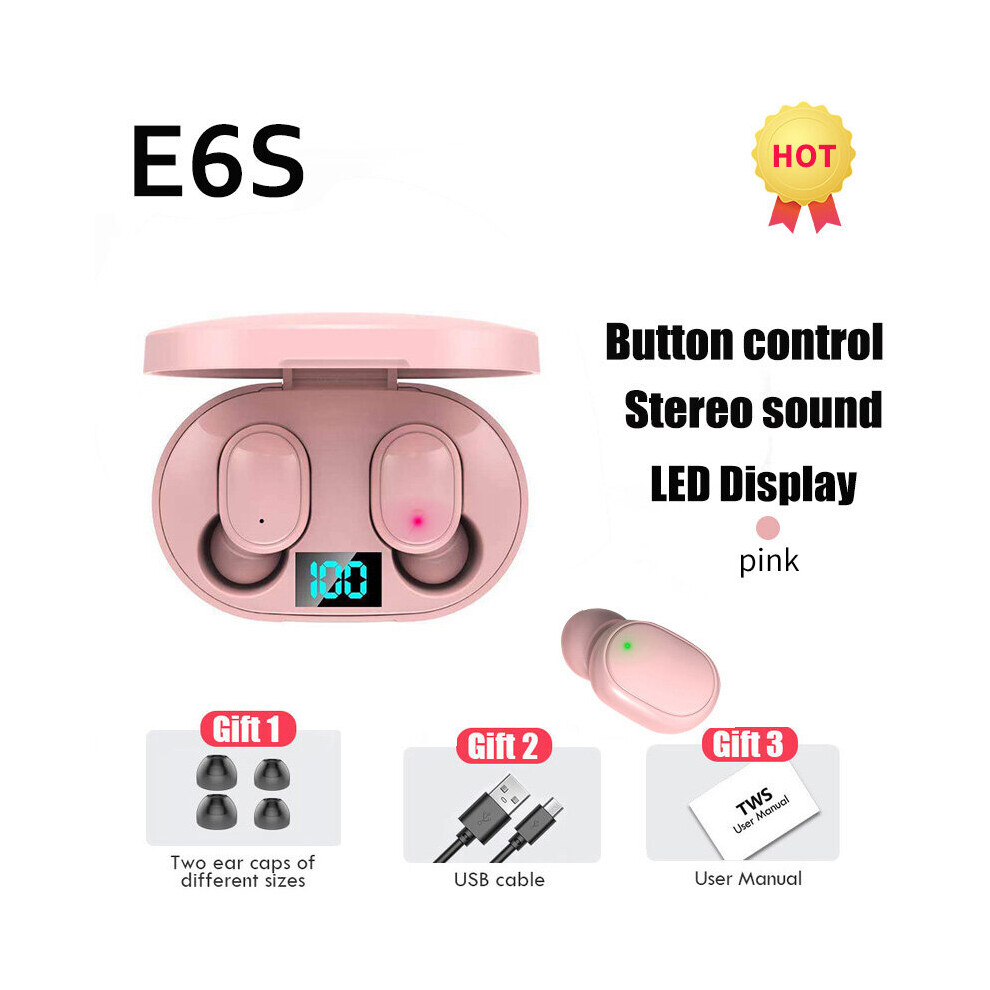 (a-Pink Earbuds) Original E6S TWS Headset Wireless Earphones Bluetooth Headphones Sport Stereo Fone Bluetooth Earbuds for Xiaomi Huawei iPhone