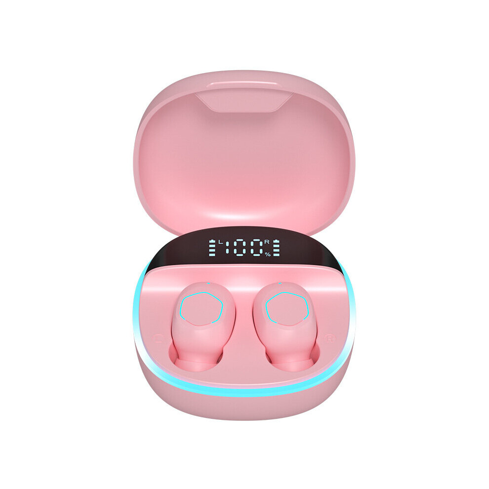 (Pink) Wireless Earbuds HiFi Stereo In-Ear Headphone With RGB Light Sport Headset For Android IOS