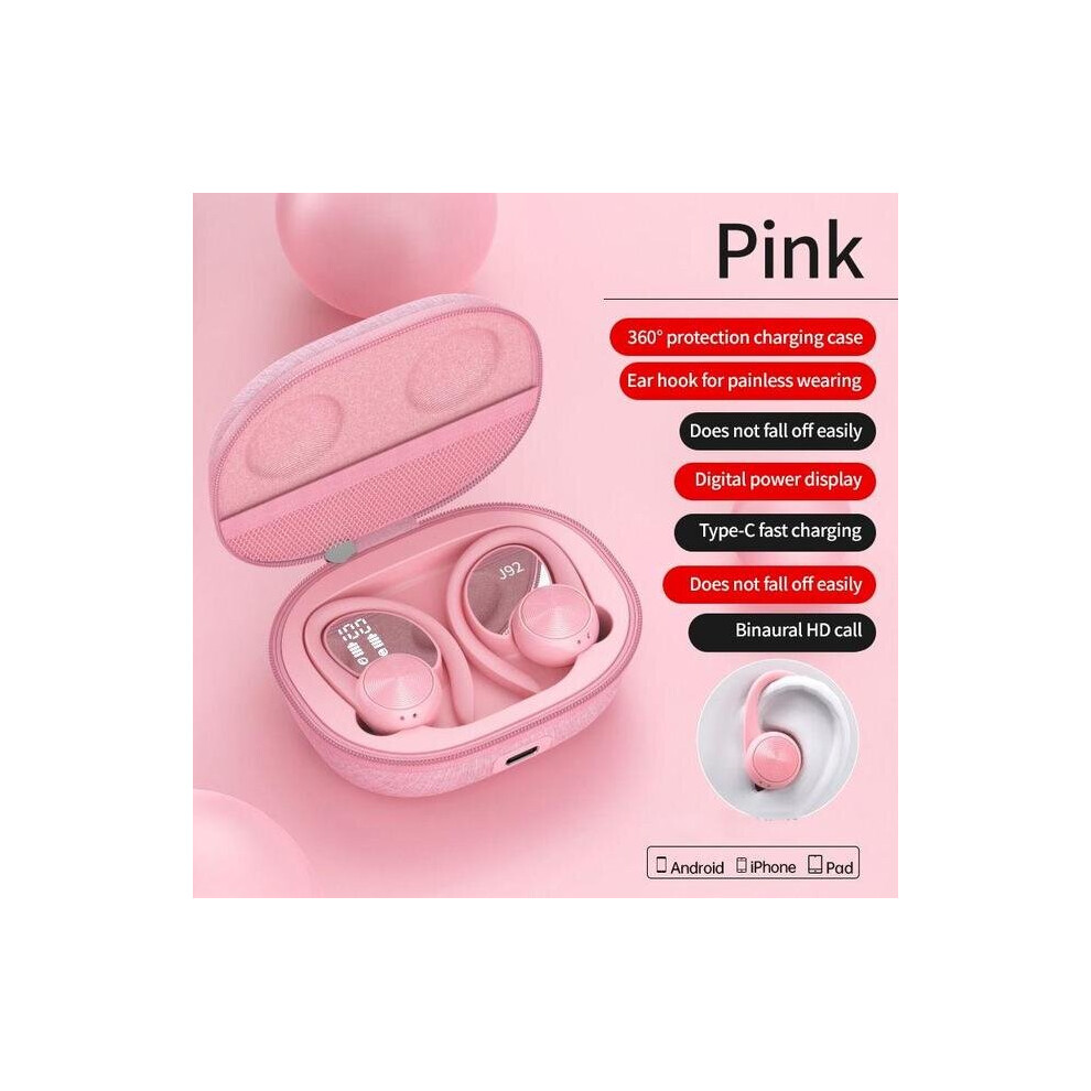 (a-Pink) TWS Sports Earbuds Bluetooth 5.0 Bass Touch Wireless Headphones Ear Hook Earphone Noise Cancelling Waterproof Headset With Mic