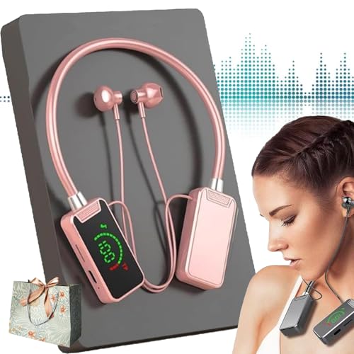Wireless Sound Card Live Streaming Earphones, Waterproof Wireless Neckband Bluetooth Headphones with Display - Sound Card Headset, Sound Card Live Broadcasting and Audio Editing Earphones (Pink)