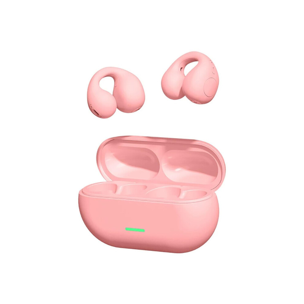 OnEar Headset T75 TWS Bluetooth 5.3 Bone Conduction Earbuds Pink Clip Earphones For Sports And Gaming