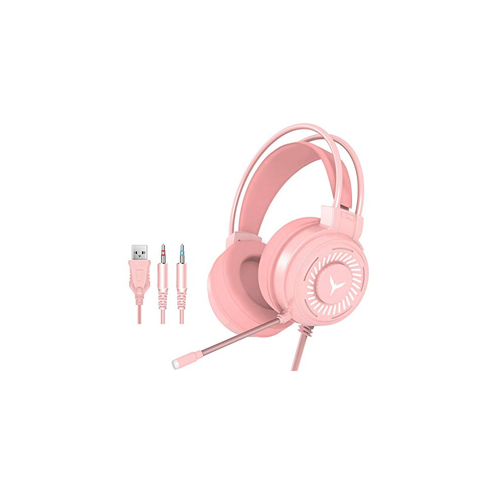 3.5mm Gaming Headset with Microphone Pink Wired Stereo Earphones for PC and Notebook Surround Sound
