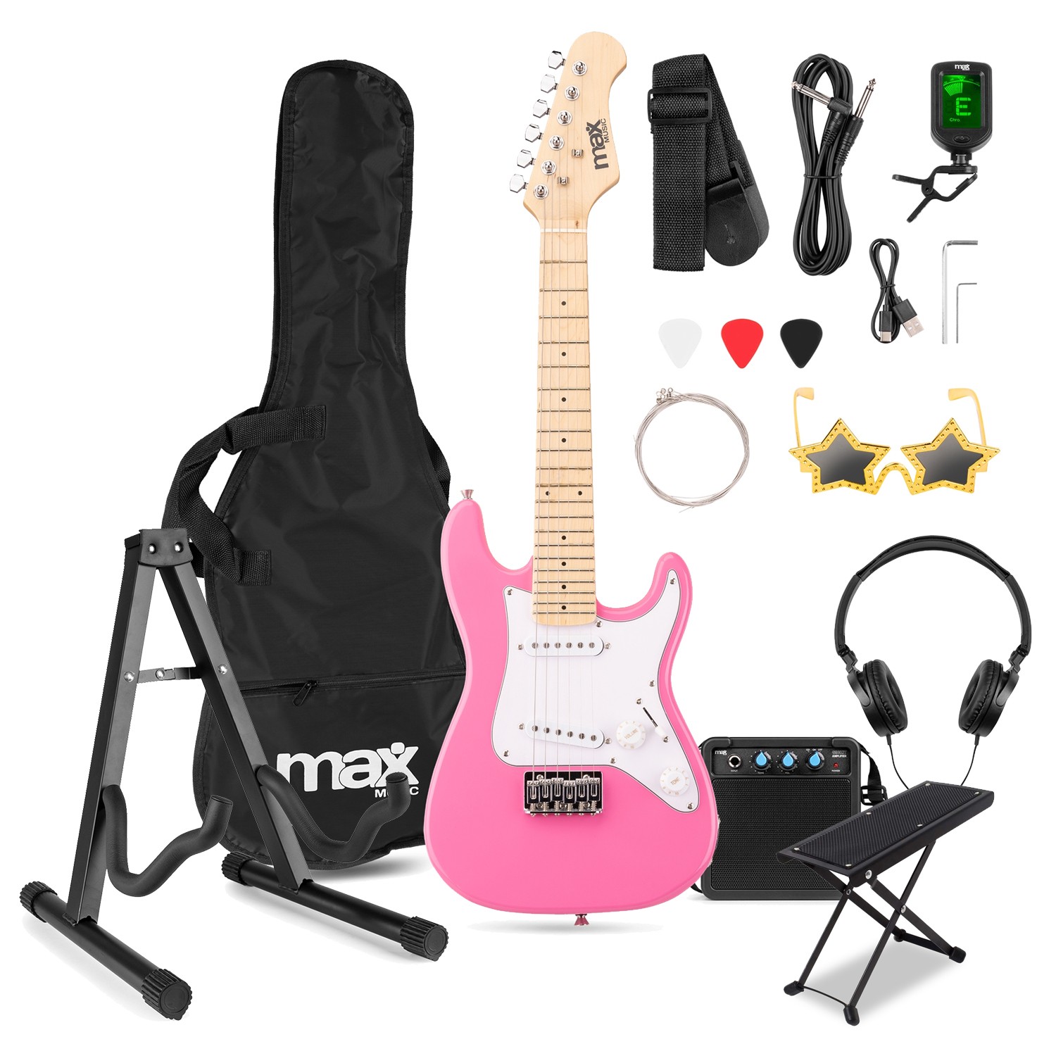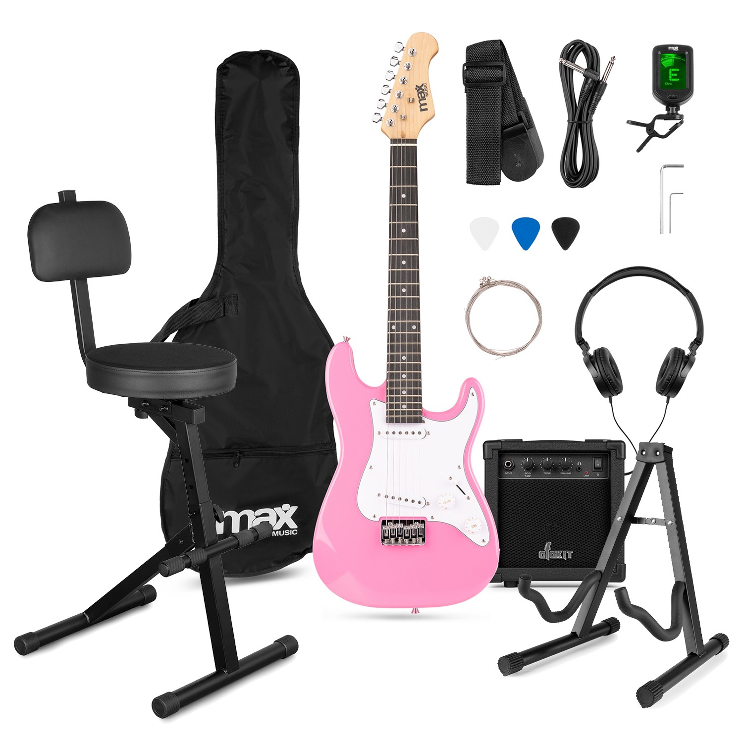 MAX GiGKit 3/4 Junior Electric Guitar with Amplifier, Stool and Stand - Pink