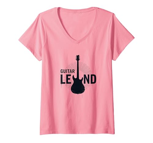 Guitar Legend Rock Star Musician Men Electric Instrument V-Neck T-Shirt, Women, Pink, L