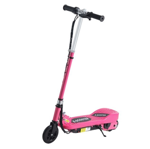 Homcom Electric Scooter, 120w Motor E-scooter W/ Battery Level Display, 2 Adjustable Heights, And Rear Brake, Suitable For 6+ Years Old, Pink