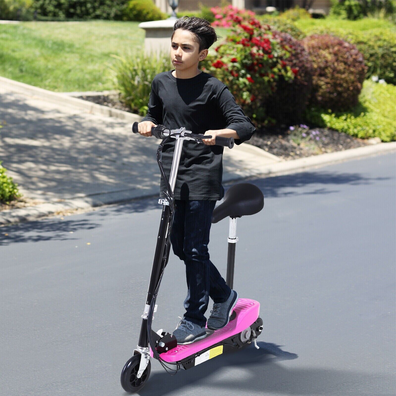 Kids Foldable Electric Scooter Battery 12V 120W Seat Brake Pink 7-12 Years