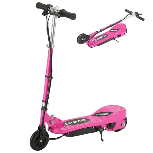 HOMCOM Electric Scooter for Kids, Foldable Powered Scooters for Age 7-12 with 120W Motor, Up to 10 KM/H & 8 KM, Adjustable Ride on Toy (Pink)