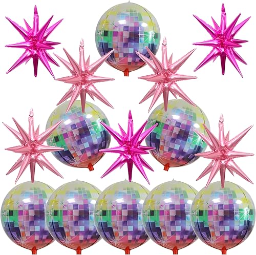 Finypa 15 Pcs Pink Disco Ball Balloons, Huge Pink Explosion Star Aluminum Foil Balloons for Birthday, Bachelorette Party, 70s 80s 90s Theme Disco Party Decorations Supplies Birthday Decorations