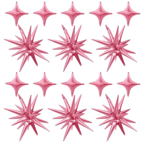 Pink Star Explosion Kit - 6 22-Inch Cone Foil and 10 10-Inch Four-Pointed Balloons for Birthday, Anniversary, Disco Party Decorations