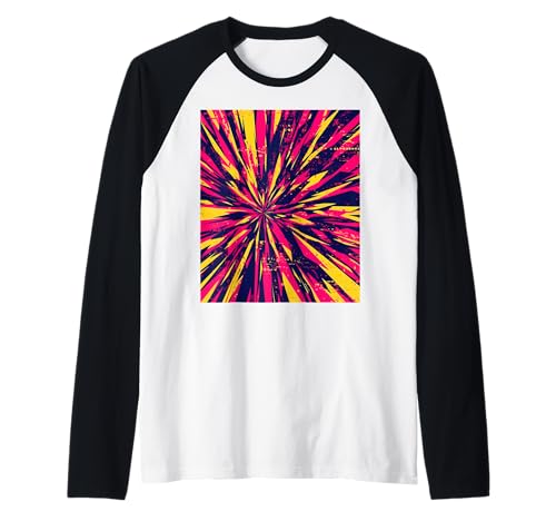 Retro Abstract Synthwave Explosion Comic Neon Pink Yellow Raglan Baseball Tee