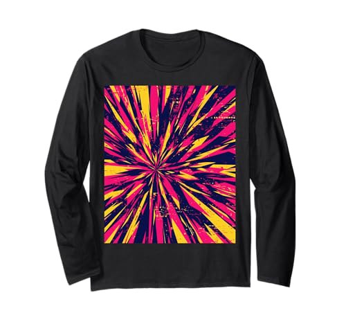 Retro Abstract Synthwave Explosion Comic Neon Pink Yellow Long Sleeve T-Shirt