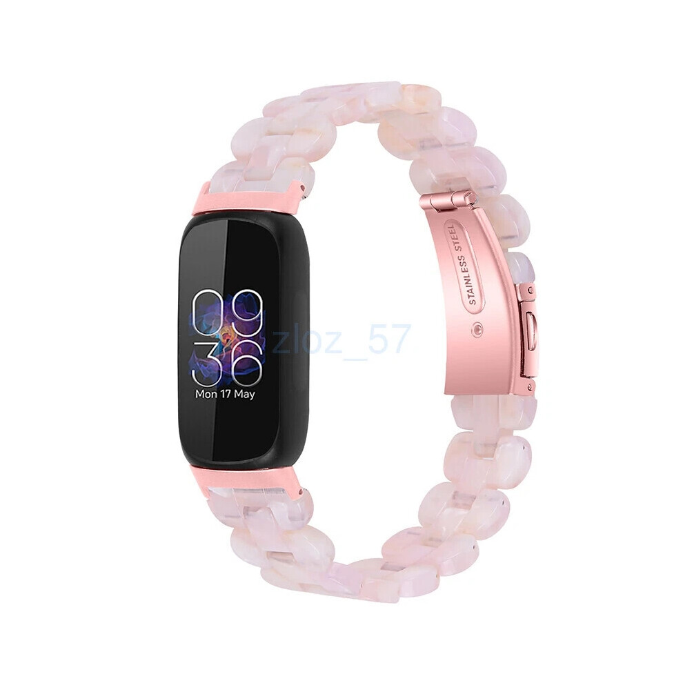 (Pink Flower) For Fitbit Inspire 3 Fashion Luxury Resin Strap Stainless Steel Watch Band new
