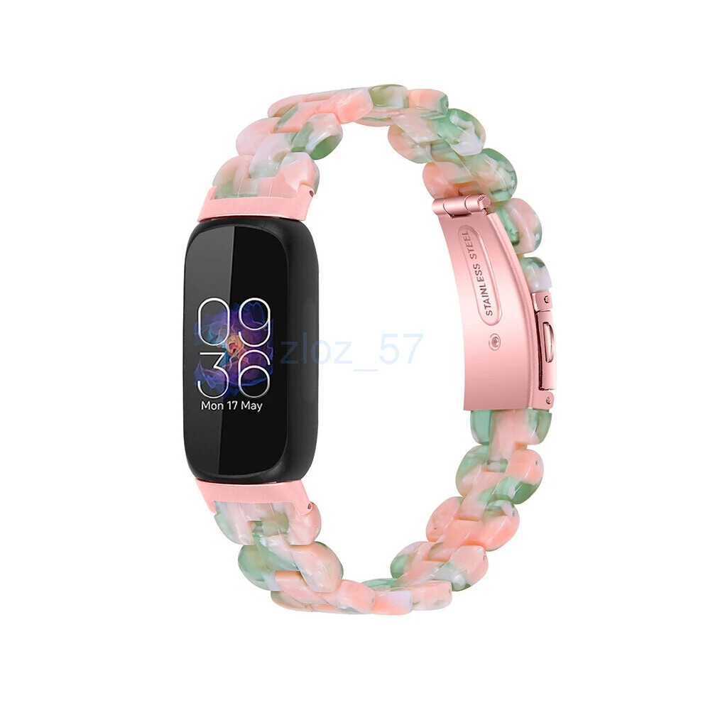 (Pink Green) For Fitbit Inspire 3 Fashion Luxury Resin Strap Stainless Steel Watch Band Hot