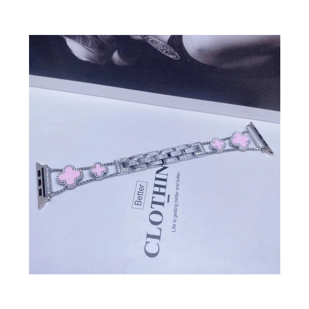 (Silver+Pink, Versa4) For Fitbit Versa 2/3/4 Diamond Inlaid Four-Leaf Clover Metal Watch Strap NEW
