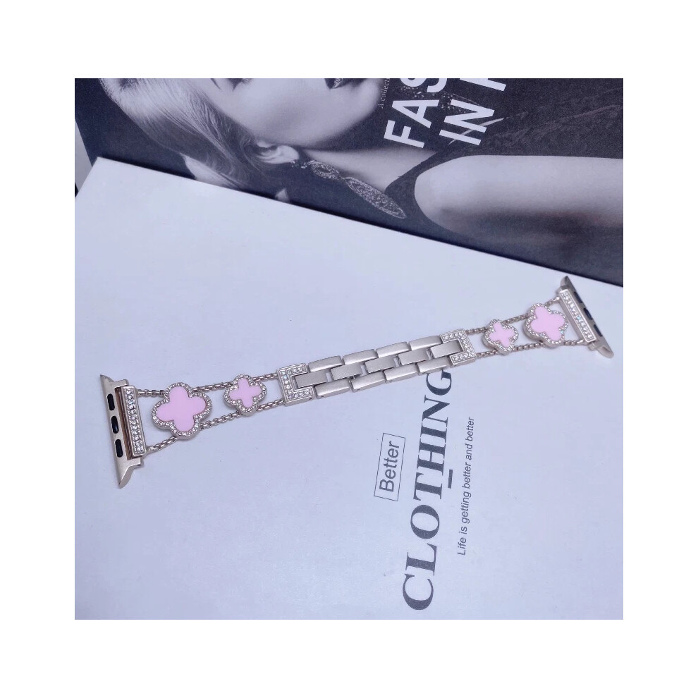 (Black+Pink, Versa2) For Fitbit Versa 2/3/4 Diamond Inlaid Four-Leaf Clover Metal Watch Strap HOT