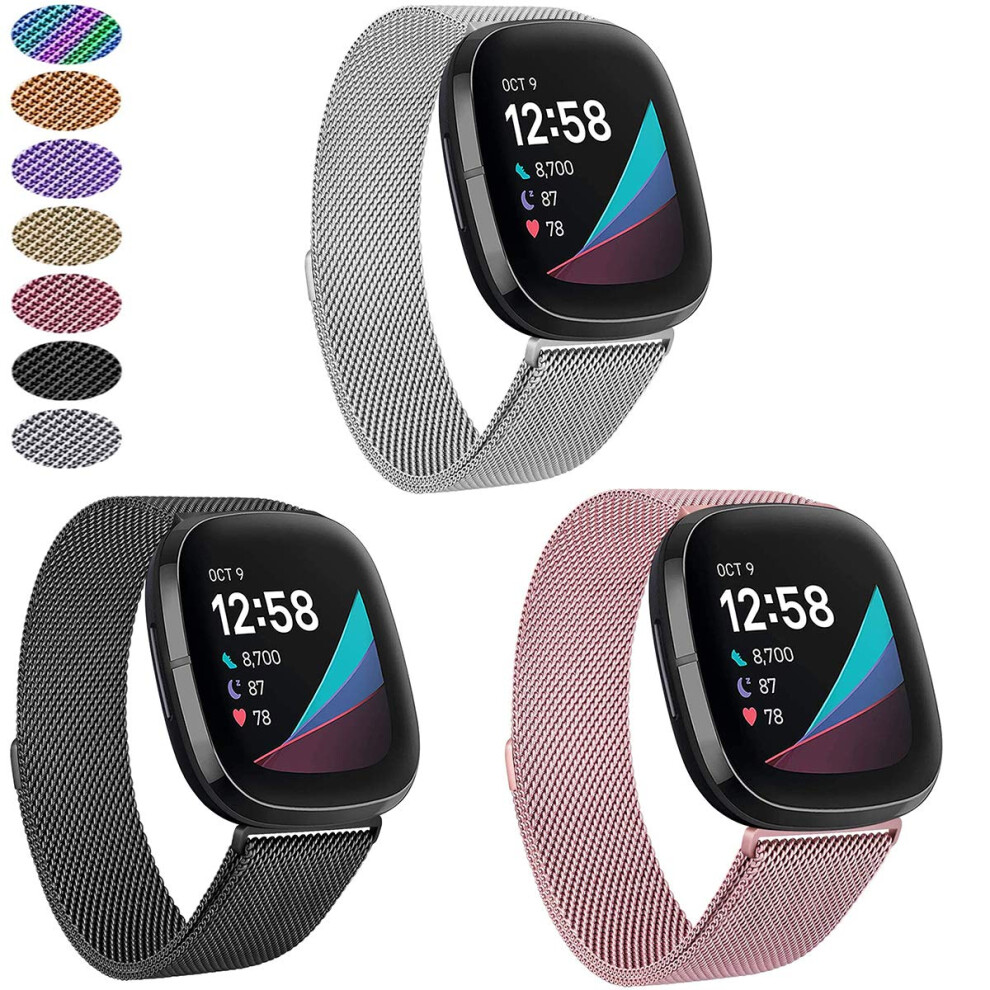 Metal Bands 3 Pack Magnetic Clasp Adjustable Steel Strap Black Silver Pink for Fitbit Versa 3 and Sense