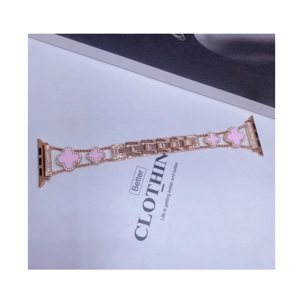 (Rose Gold+Pink, Versa2) For Fitbit Versa 2/3/4 Diamond Inlaid Four-Leaf Clover Metal Watch Strap HOT