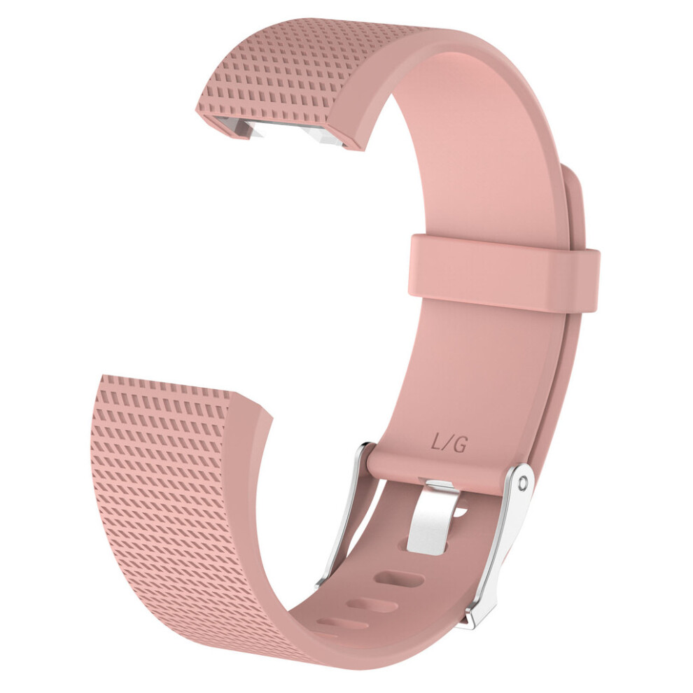 (Light Pink, L) Compatible Fitbit Charge Plaid Strap With Silicone Material Multiple In Colors