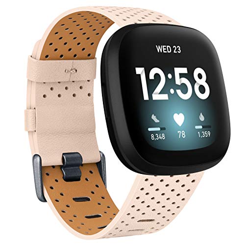CeMiKa Leather Strap Compatible with Fitbit Sense/Fitbit Versa 3 - Genuine Leather Wristband for Women & Men, Pink Sand