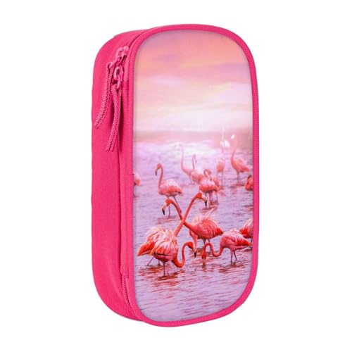 NBHDZENGW Pink Flamingos Large Capacity Double Layer Pencil Case,Custom Printed Durable Polyester Organizer for School, Office, Travel, Art Supplies Makeup