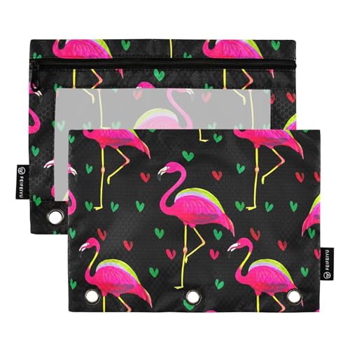 Work Pencil Pouch for 3 Ring Binder Pen Pencil Bags with Zipper Zippered School Clear Binders Pockets Neon Flamingos Pink Black 9.8" x 7.1", 2 Packs