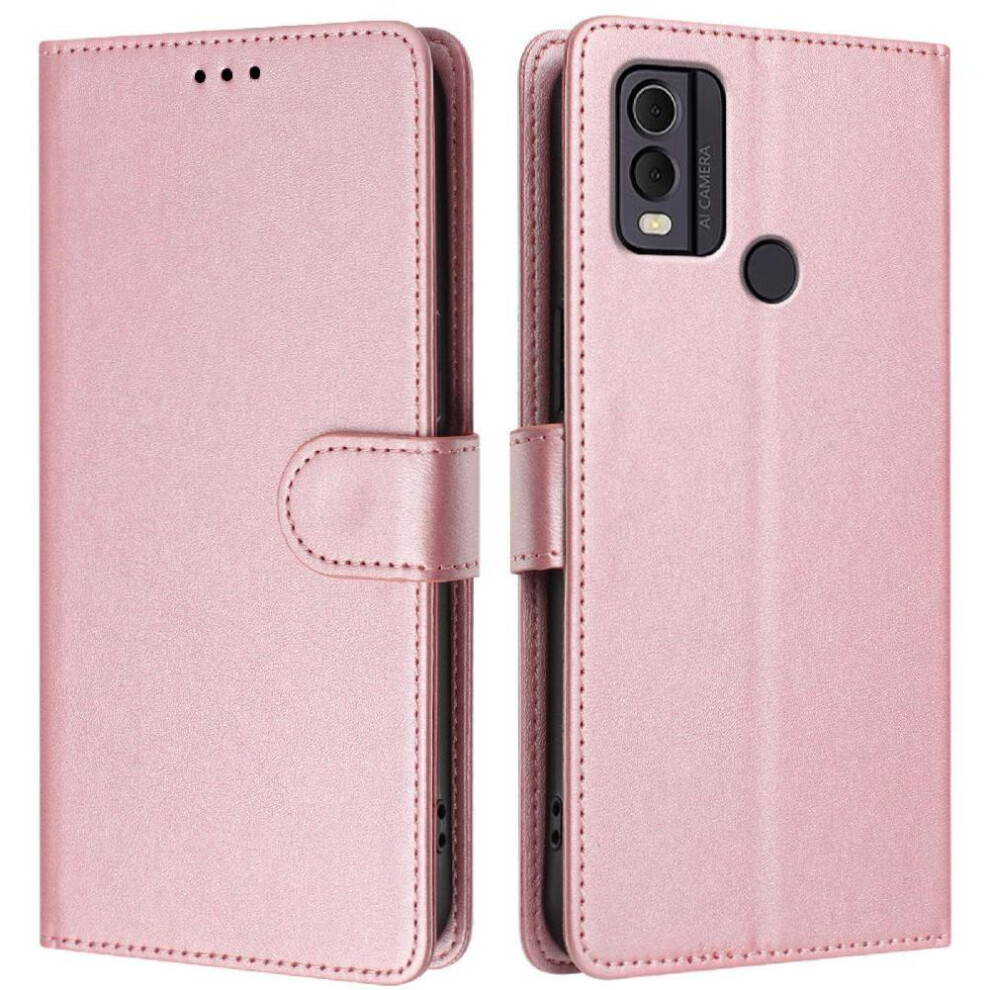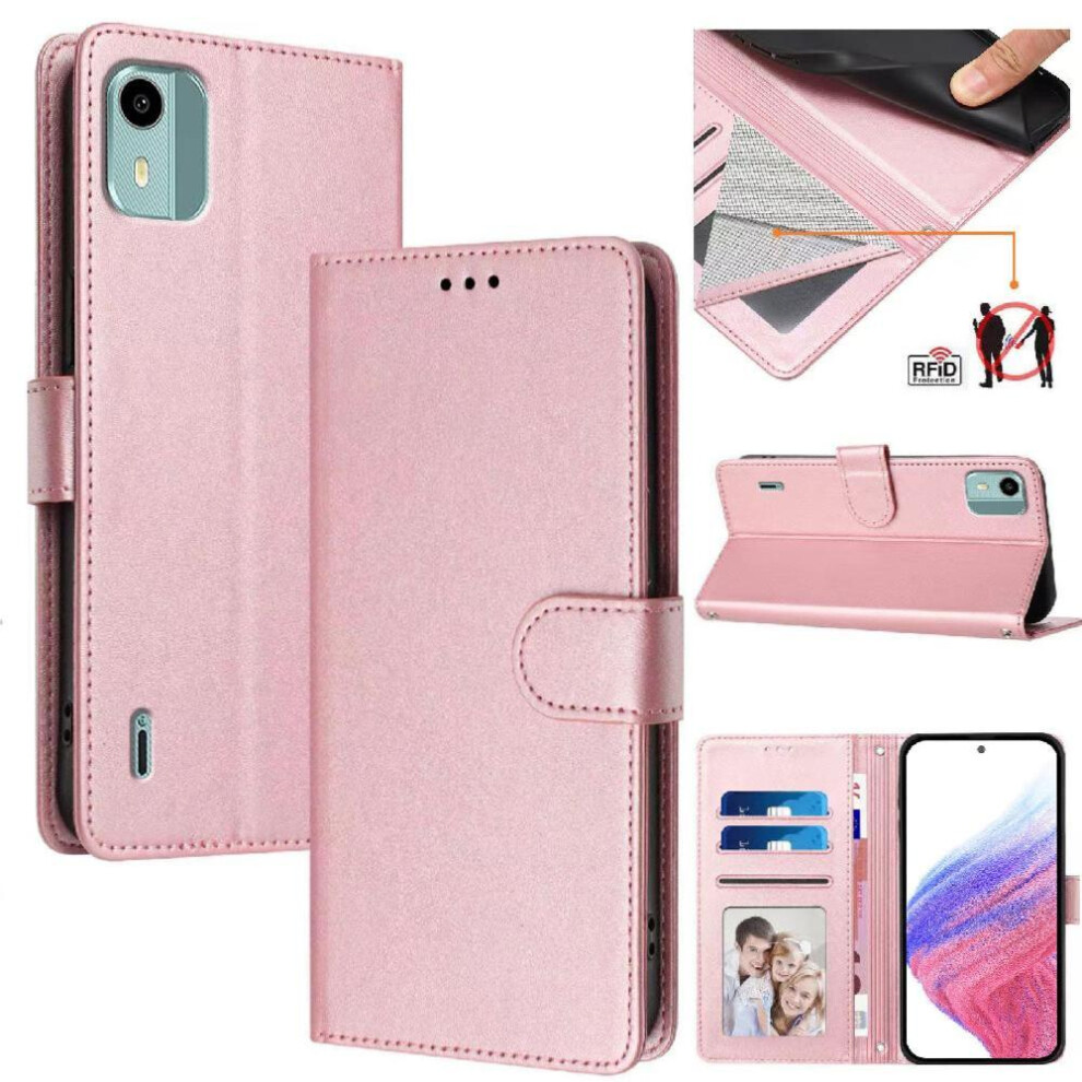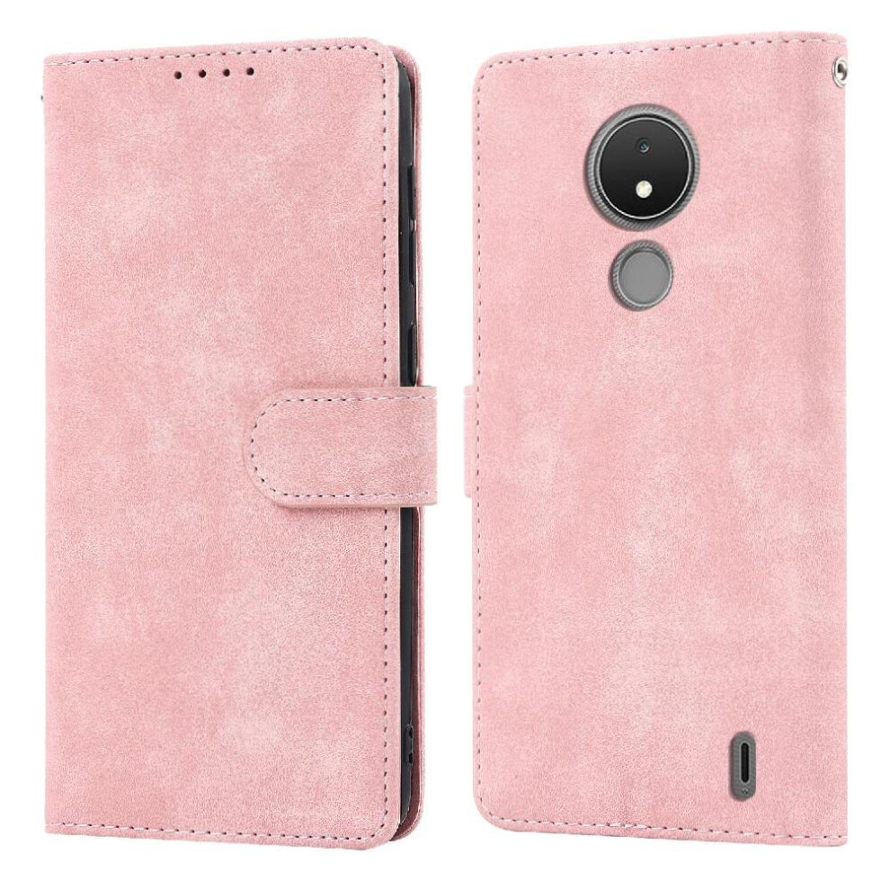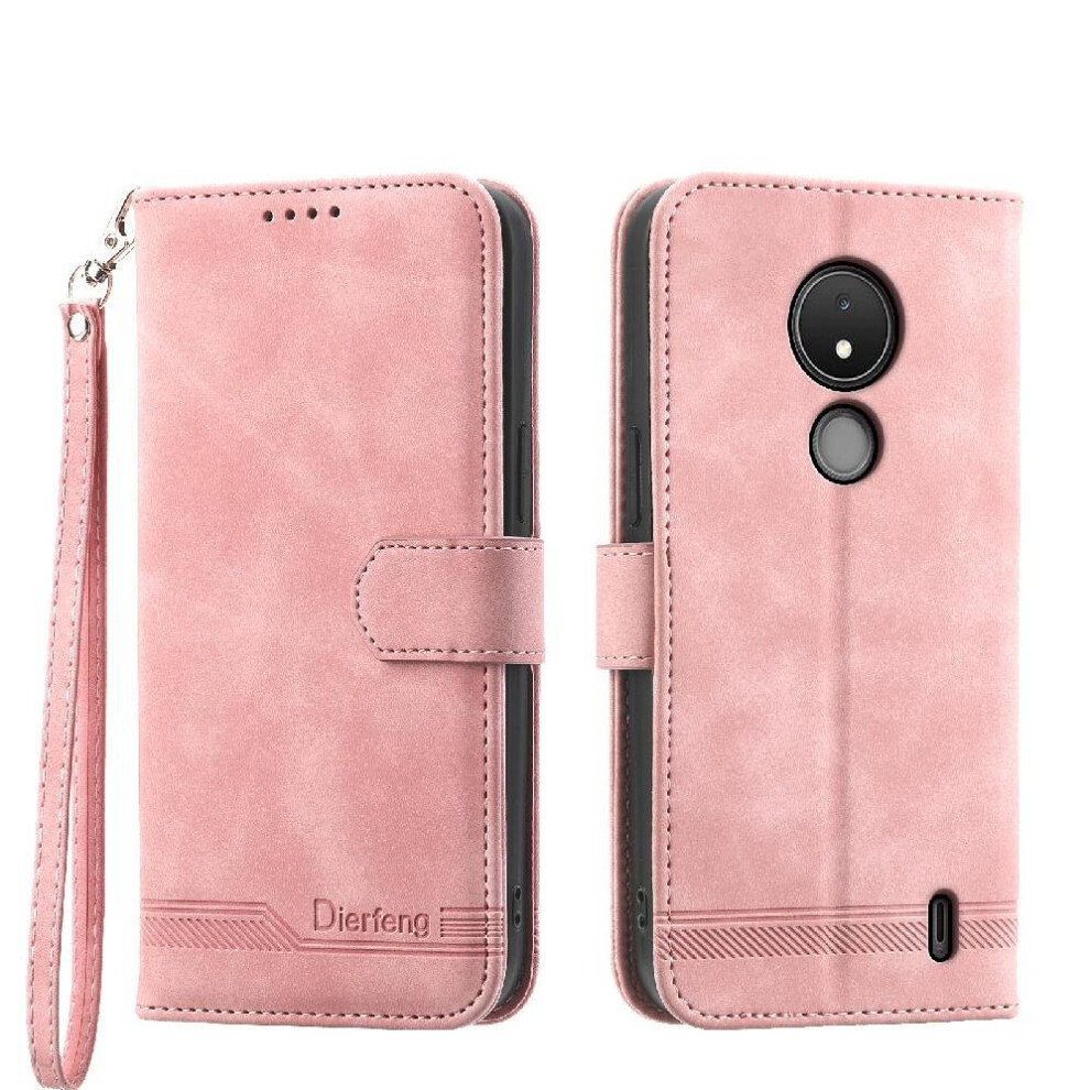 (Pink) Classic Style Flip Case for Nokia C22 Card Holder Magnetic Closure Rfid Blocking Shockproof Wallet Case