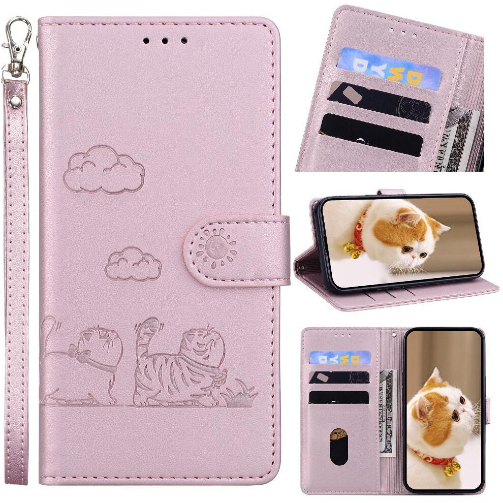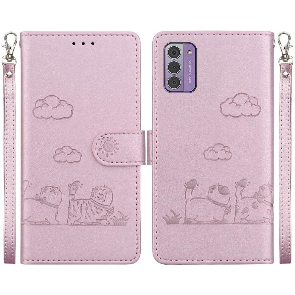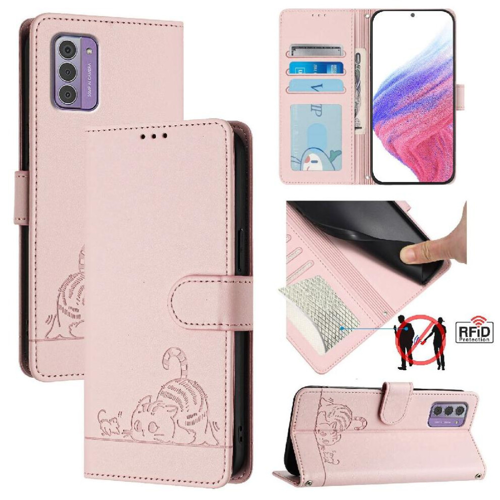 (Pink) Case for Nokia G42 Card Slot Holder Kickstand Wallet Flip Cover Cat Rfid