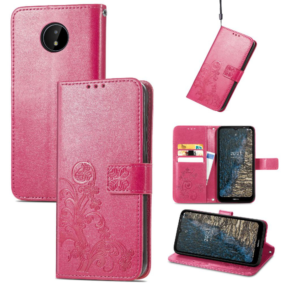 (Pink) Case For NOKIA C20 Short Strap Flip Cover Exquisite Business Leather Case Four Leaf Clover