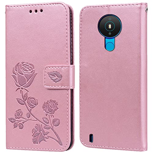 PKQTOP Phone Case for Nokia 1.4 with Kickstand,Card Slots,Silicone Bumper,Shockproof,Flip Wallet Leather Protective Cover for Nokia 1.4(6.52'') Pink