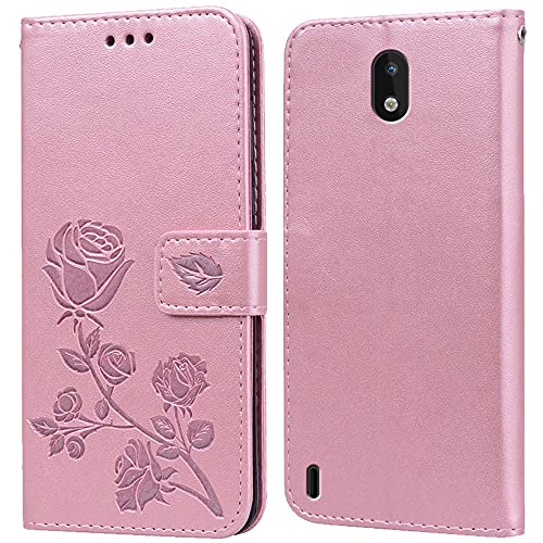 Nokia 6.1 Case, Nokia 6 2018 Case, Magnetic Premium Leather Wallet Flip Case Cover Pouch for Nokia 6.1 with Card Holder Slots & Stand Feature (Rose On Pink Diamond)
