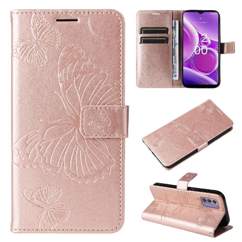 SATURCASE Case for Nokia 3.4, Butterfly Flower PU Leather Flip Magnet Wallet Stand Card Slots Protective Cover with Hand Strap for Nokia 3.4 (Pink)