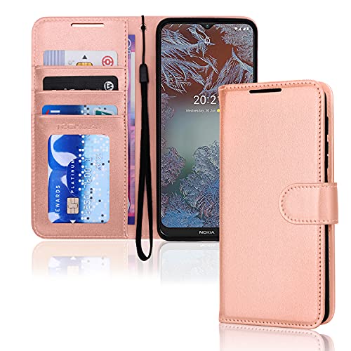 TECHGEAR Case Fits Nokia G10 / G20 Leather Wallet Case, Flip Protective Case Cover Wallet Card Holder, Stand and Wrist Strap - Rose Gold PU Leather with Magnetic Closure Designed For Nokia G10, G20