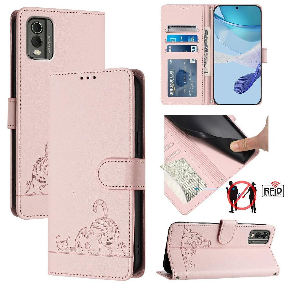(pink, Nokia C22) Leather Case Wallet Durable RFID Blocking Card Holders Shockproof Kickstand Protective Flip Cover For Nokia HMD Fuison/Nokia X30 G11
