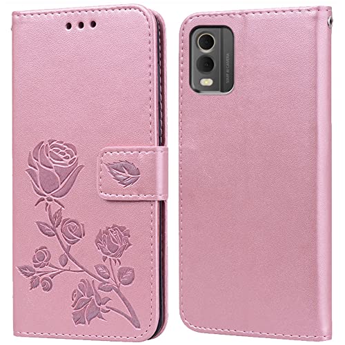 PKQTOP Phone Case for Nokia C32/C22 with Kickstand,Card Slots,Silicone Bumper,Shockproof,Flip Wallet Leather Protective Cover for Nokia C32/C22 Pink