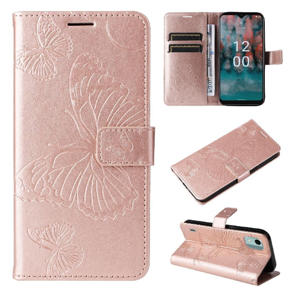SATURCASE Case for Nokia 1.3, Butterfly Flower PU Leather Flip Magnet Wallet Stand Card Slots Protective Cover with Hand Strap for Nokia 1.3 (Pink)
