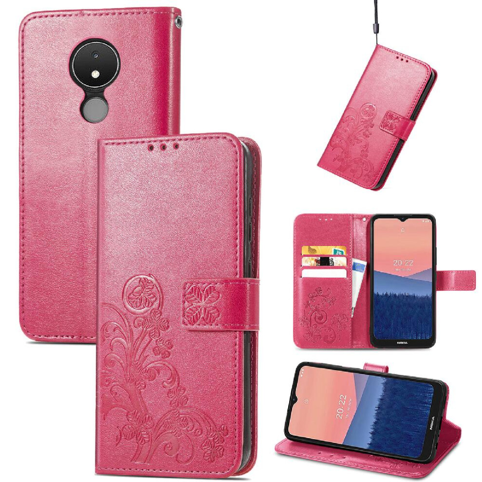(Pink) Case For NOKIA C21 Exquisite Business Flip Cover Short Strap Leather Case Four Leaf Clover