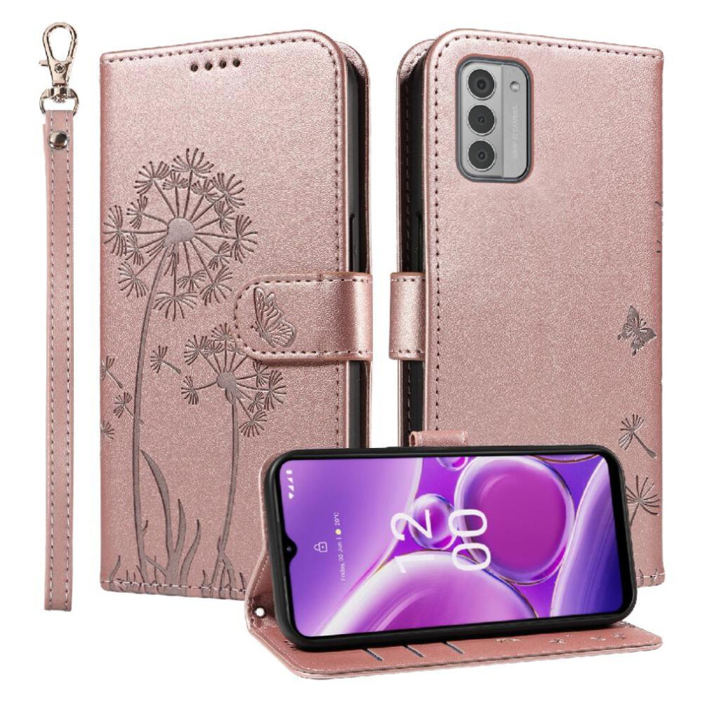 (Pink) Compatible with Nokia G42 Flip Case Dandelion Print Leather Phone Case with Card Slots and Wrist Strap Stylish and Protective