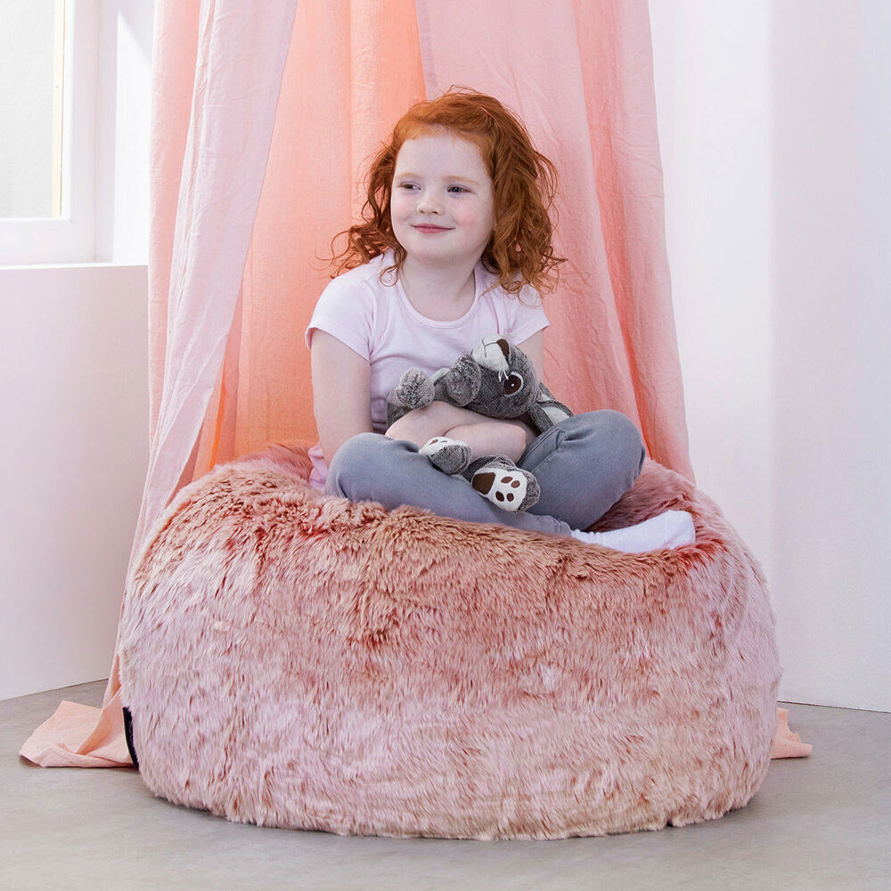 icon Kingston Faux Fur Kids Bean Bag, Rose Pink, Fluffy Kids Bean Bag Chair with Filling Included for Girls and Boys, Childrens Chair, Beanbags for Children, Playroom Décor, Bedroom Accessories