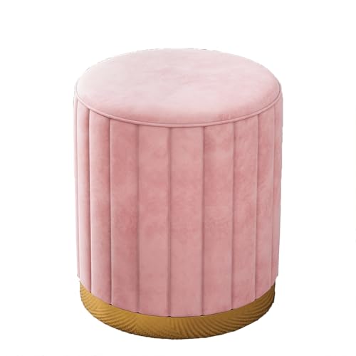 GZHENOZ Pink Round Footstool with Metal Legs and Anti Slip Foot Pads, Vanity Table Stool Ottoman Pouffe for Living Room and Bedroom