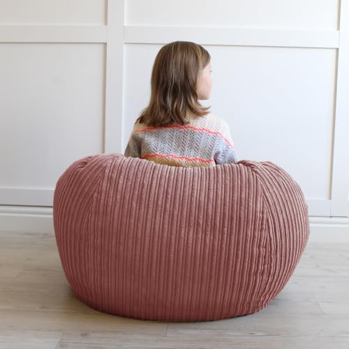 rucomfy Beanbags Big Kids Snuggle Chair - Large Corduroy Armchair for Kids & Teenagers - Home Furniture Living Room or Bedroom Seating - Machine Washable - 70 x 80 x 60cm (Blush Pink, with Footstool)